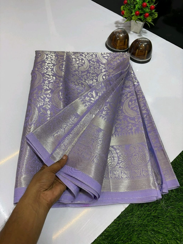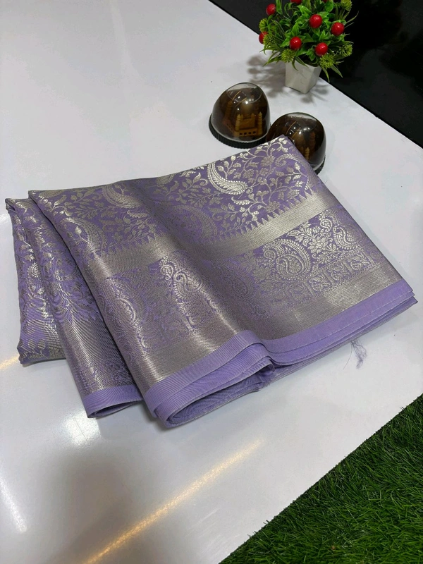 Soft Katan Silk With Silver Zari Weaving Allover Saree