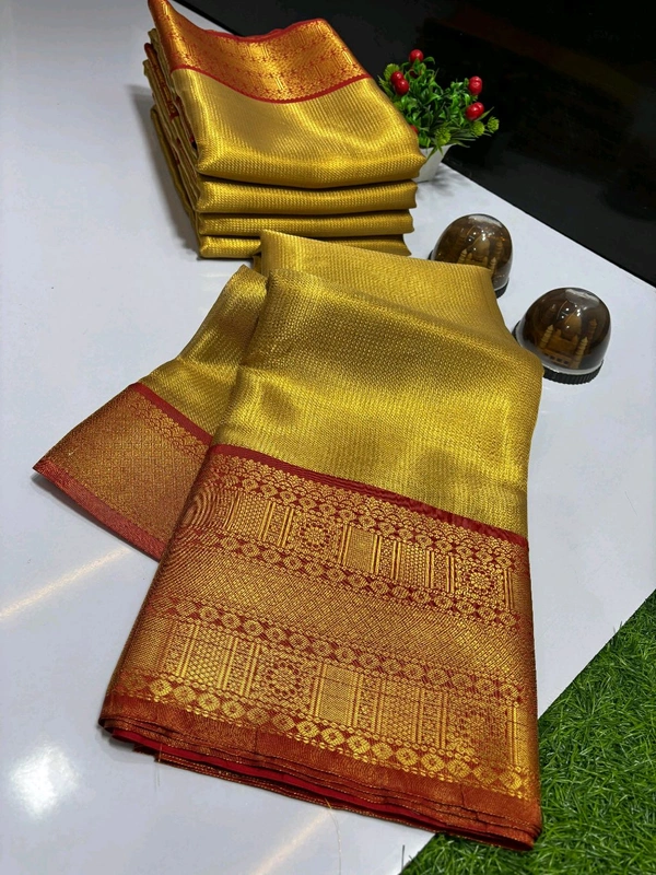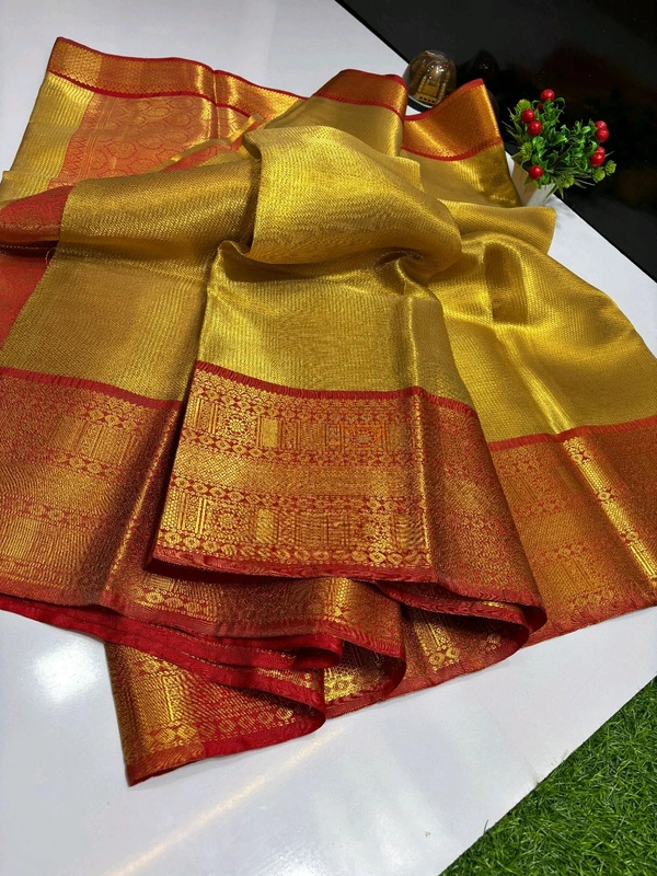 Banarasi Tissue Silk Saree With Heavy Kanjivaram Border