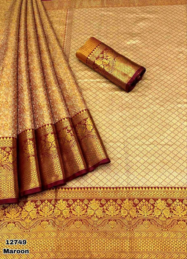 1 Gm Gold Zari Weaving Kanjivaram Silk Saree
