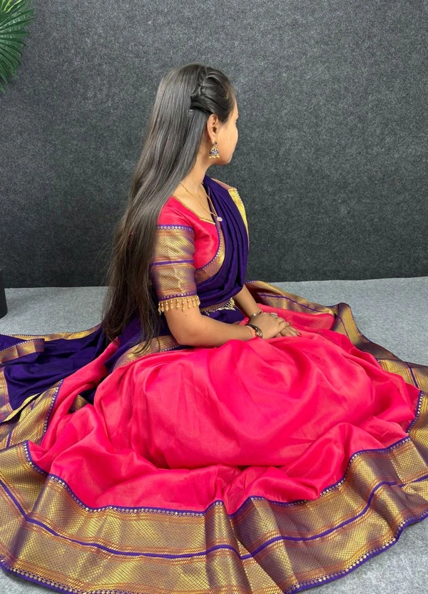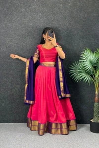 Russian silk with Kanjivaram zari Border Lehenga ✨