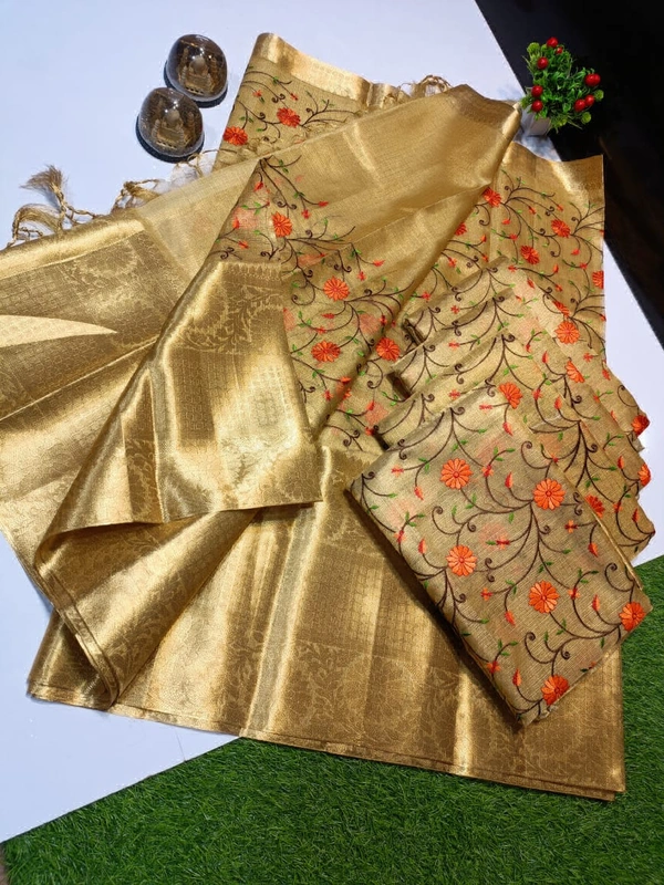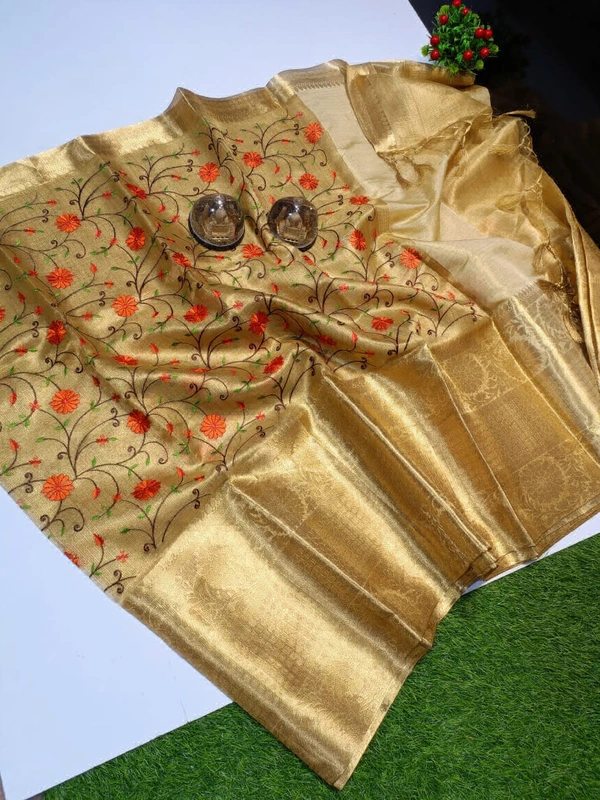 Tissue Banarasi Embroidery Saree - TAB0502 ( NO COD )
