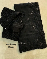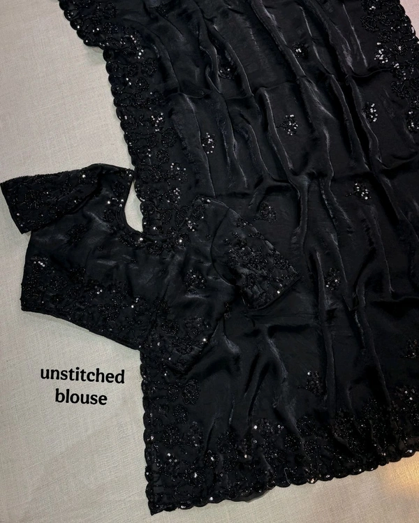 Full Heavy tone to tone Beads & sequins work in full saree & blouse with cutwork pattern in saree border