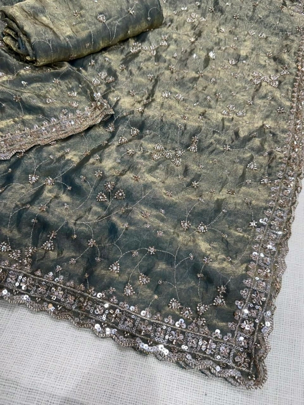 Full Heavy zaal Pattern beads & sequins work satin space silk designer saree