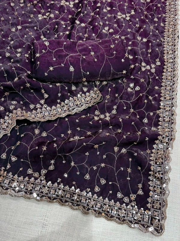 Full Heavy zaal Pattern beads & sequins work satin space silk designer saree