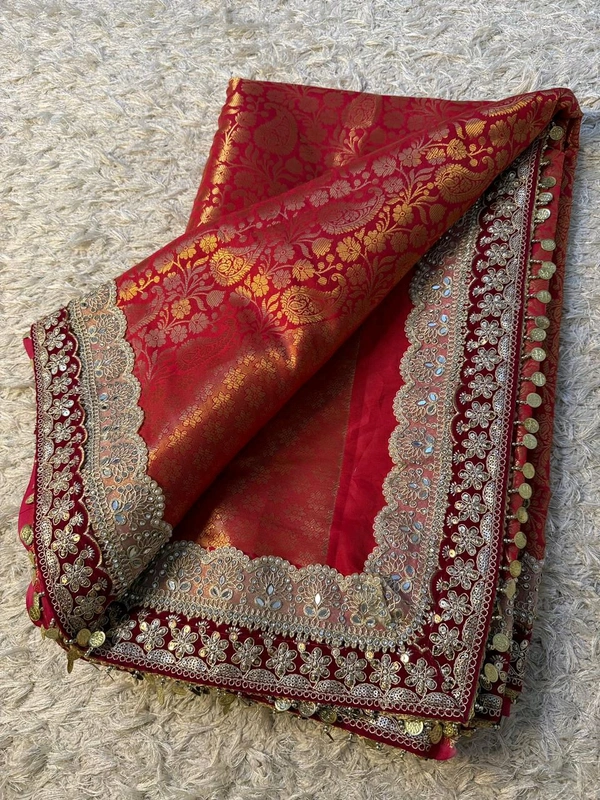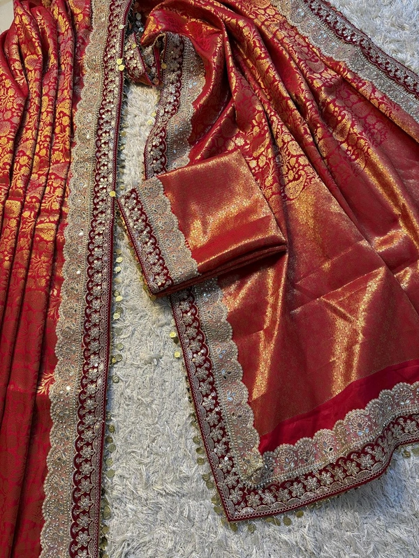 Premium Kanjivaram Soft Tanchui Saree With Maggam Lace Border