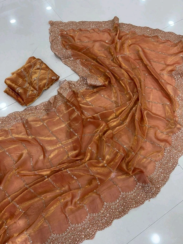 Sattin Space Silk Sequence Emrodairy Work Saree With Running Blouse