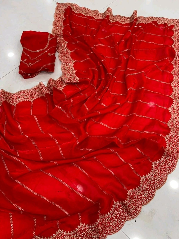 Sattin Space Silk Sequence Emrodairy Work Saree With Running Blouse