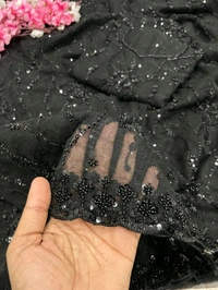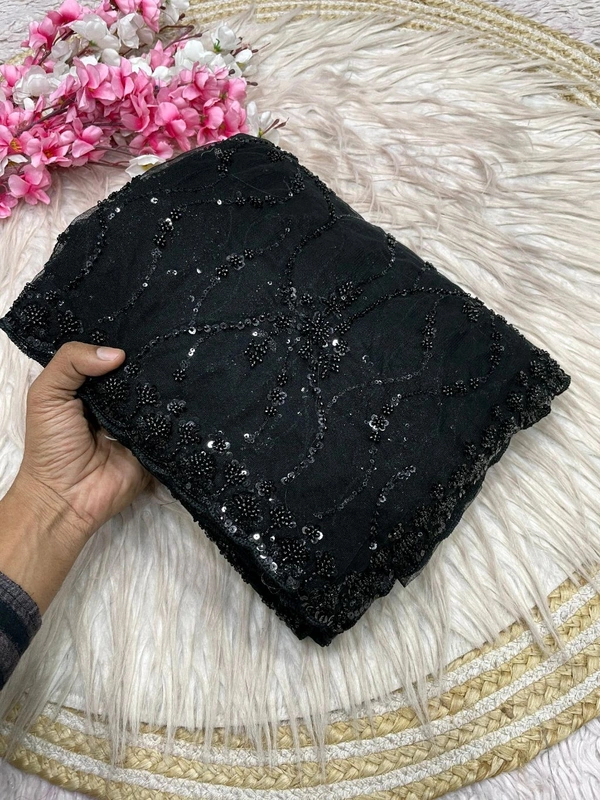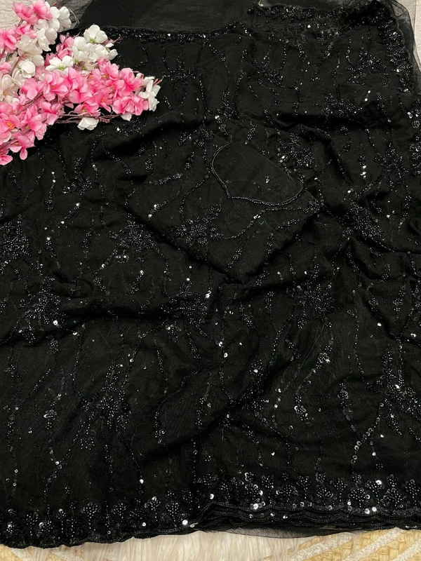 Celebrity Inspired Soft Net Saree With Self Colour Sequence And Beads Work