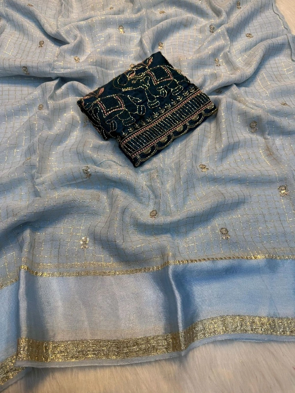 Pure viscose georgette saree with Zari Chex weaving and satin border With Beads Work Blouse