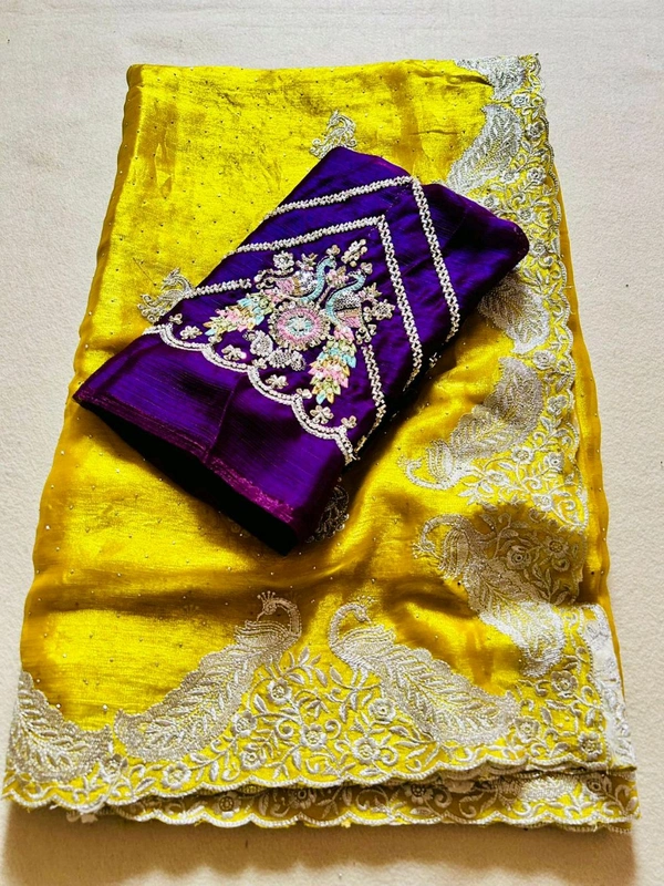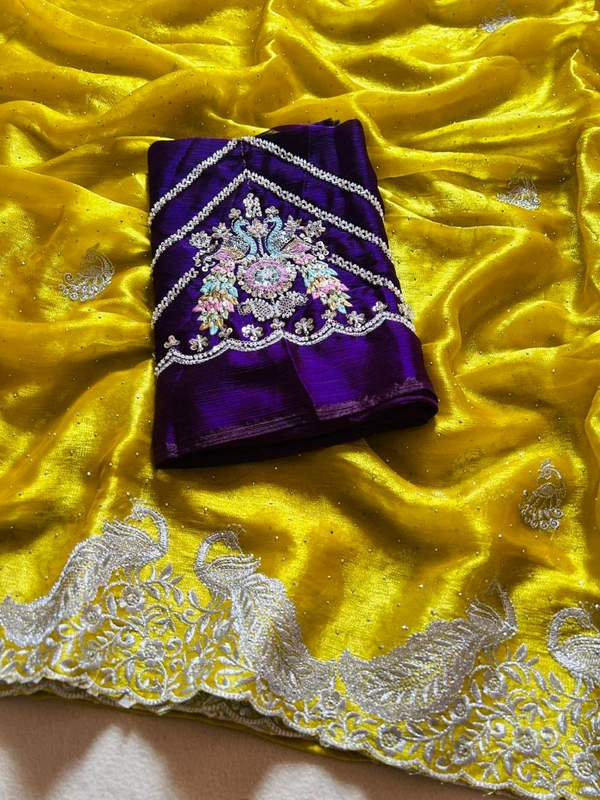 Crunchy chiffon crush silk with beautiful embroidery work scalloped cut work border