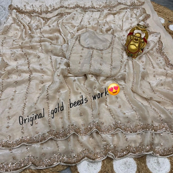 Launch Grand party wear saree in original gold beeds work
