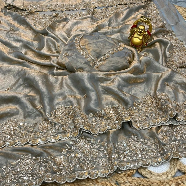 Bollywood inspired Original gold beads work velvet shine space silk saree