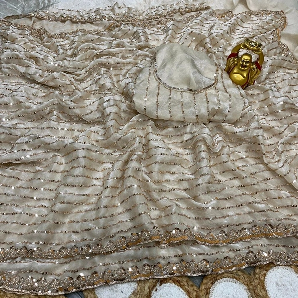 Bollywood inspired Grand party wear saree in original gold beeds work Space Silk Fabric