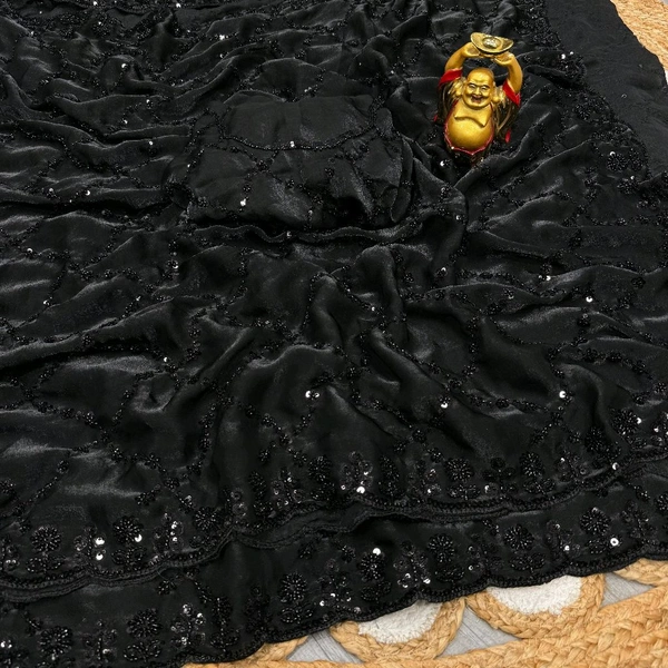 Launch Grand party wear saree in original black beeds work