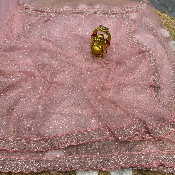 Bollywood Inspired Sequence And Beads Work Soft Net Fabric Saree