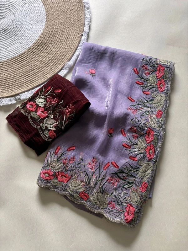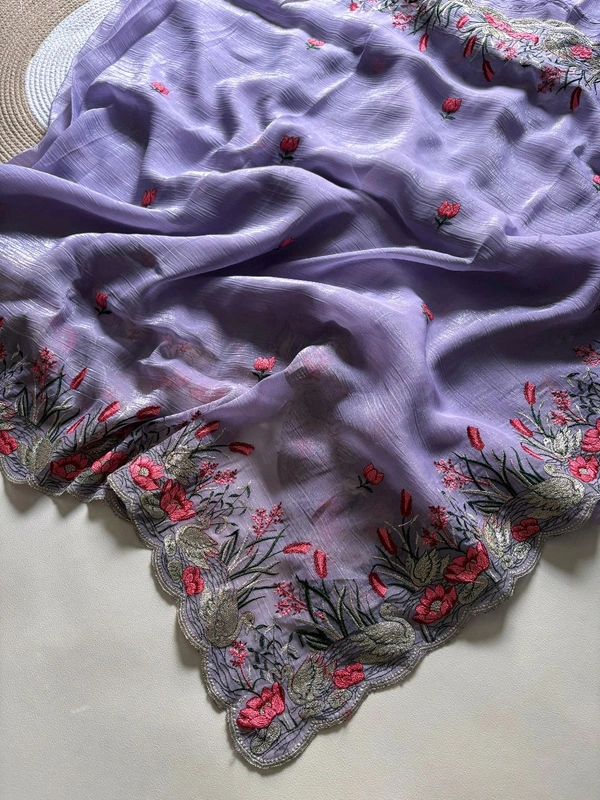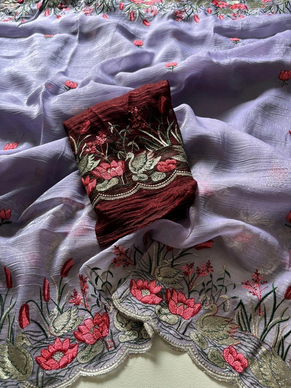 heavy crunchy saree with beautiful c-pallu with embroidery work in all saree with multi work with rich look